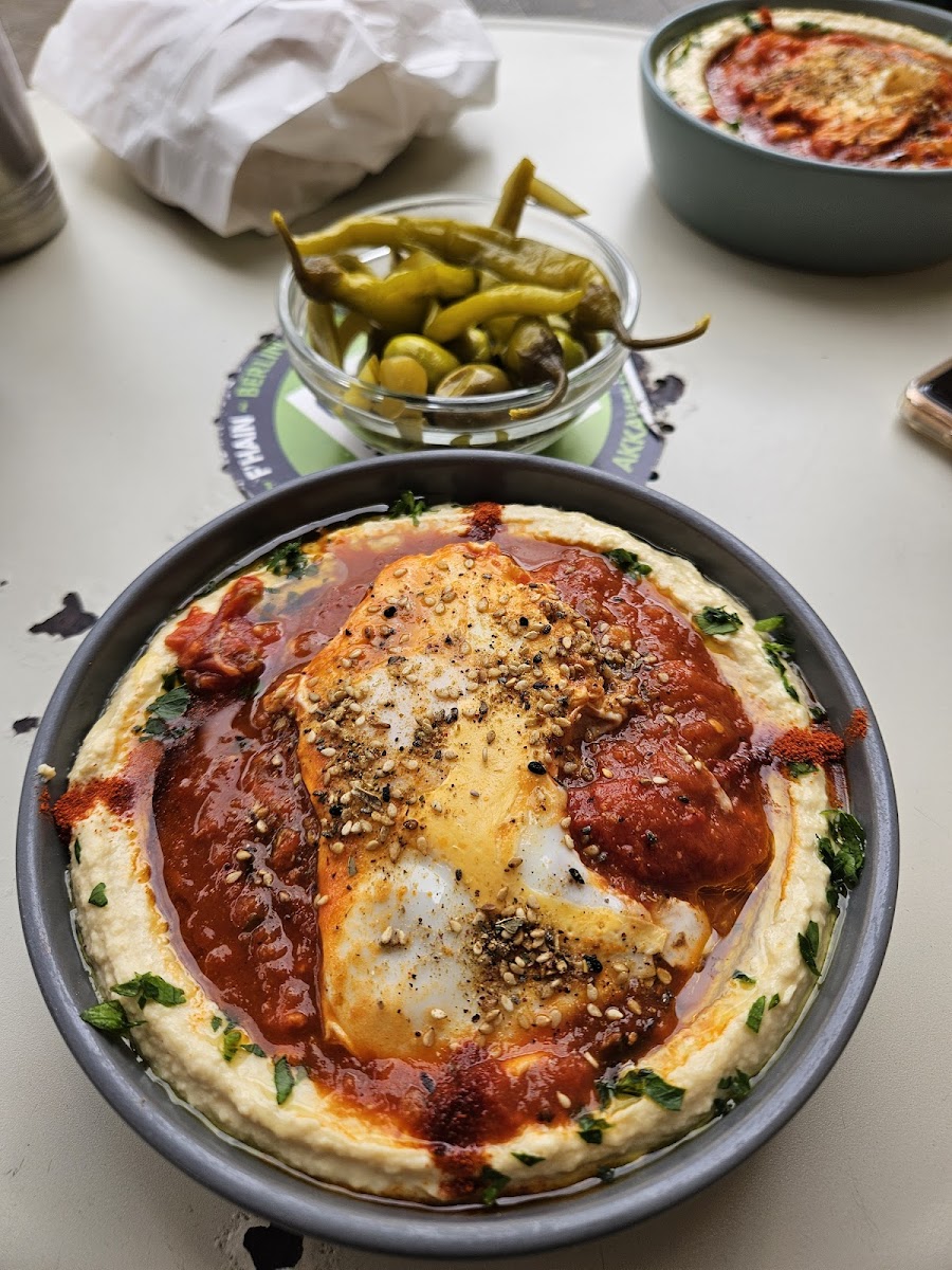 My favorite hummus bar in Berlin. It’s just a 7-minute walk from Warschauer Straße, making it super convenient to reach. Booking a table is easy, and the owner is always warm and welcoming, it gives the place a really relaxed and friendly vibe. The menu is simple and well-curated, with no overwhelming choices, just delicious, comforting food and drinks. Everything is vegetarian, which makes it an excellent spot if you’re dining with someone who prefers halal. There’s a board outside displaying the daily menu, so you can see what’s available before going in. I highly recommend sitting outside, it’s perfect for a casual meal and a bit of people-watching.